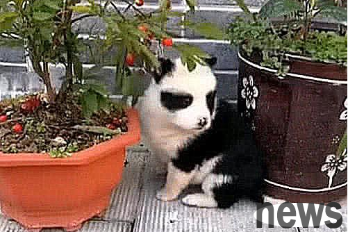 Looking from a distance, the puppy looks exactly the same as the panda. The most prominent feature is the facial feature, which also has dark circles under the eyes and a pair of black ears. It is simply a mini version of a giant panda.