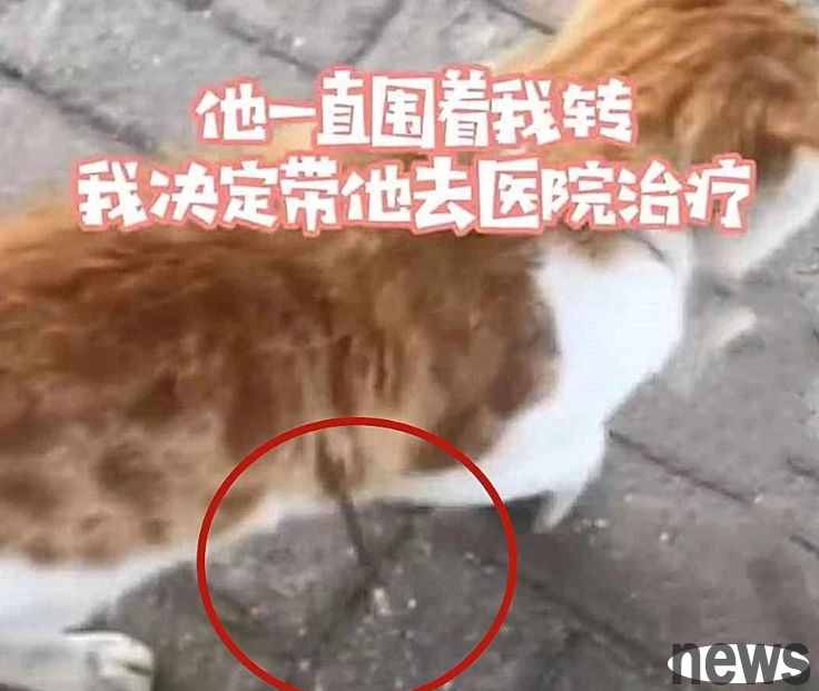 A netizen met a stray orange cat on the road, which kept circling around him. At first, he thought it wanted to beg for food, but when he looked down, he found a steel needle stuck in its body! I thought it was a prank, but I shed tears when I saw it.
