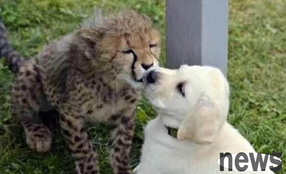 Although the cheetah is a wild beast, under the leadership of the "warm man" Golden Retriever, the little cheetah "becomes" a cat, and is as lively and cheerful as a cat. Everyone knows that pets at home like to rub against people, and this little cheetah rubs against the golden retriever like a cat all day long, and even kisses the golden retriever very intimately. The relationship is really extraordinary.
