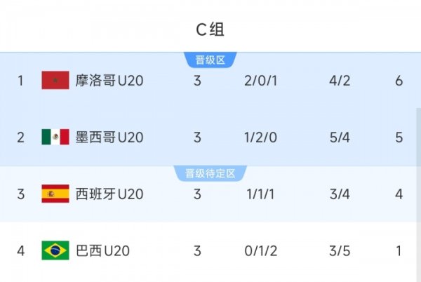 1 draw and 2 losses are eliminated at the bottom! Brazil 0-1 Spain in the World Youth Championship, with 5 championships and 4 Asian Games, but only 1 point in this three matches