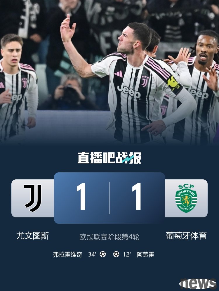 In the 4th round of the UEFA Champions League, Juventus drew 1-1 with Sporting CP and Vlahovic scored.