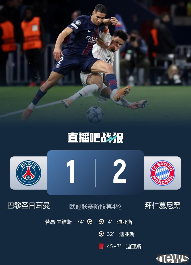 In the fourth round of the Champions League stage, Bayern defeated Paris 2-1. Dias scored twice and then became red.
