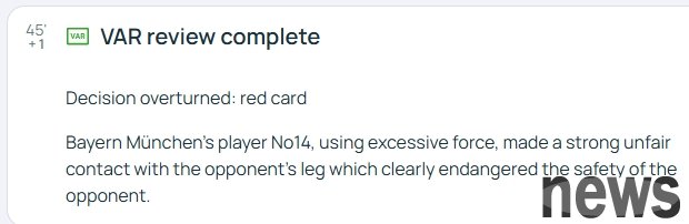 Official explanation: "Decision overturned: red card. Bayern's No. 14 player used excessive force and had obvious improper contact with the legs of the opponent's players, seriously endangering the safety of the opponent's players."