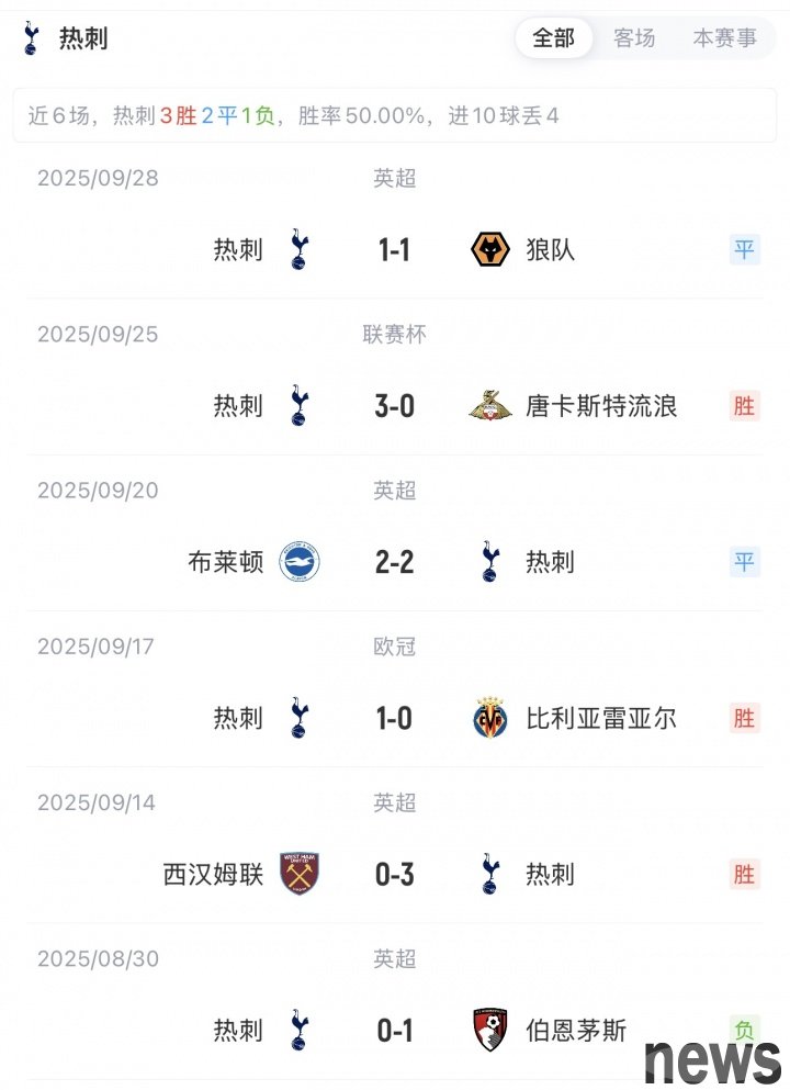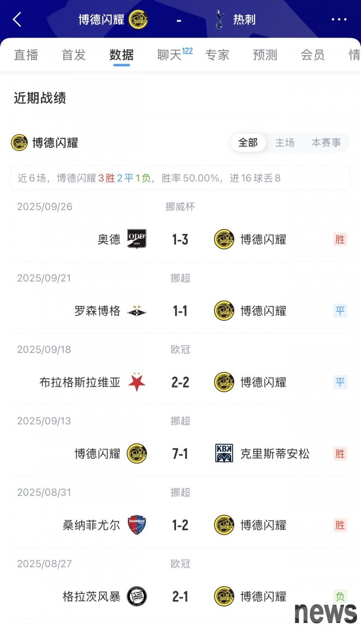 In the first round of the Champions League, Tottenham defeated Villarreal 1-0 at home; Bode shining draws Slavia Prague 2-2 away! Tottenham and Bord Shining have played twice, and both Tottenham won!